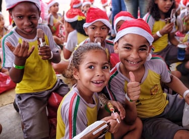 Arrecadamos fundos para comprar doces e brinquedos, levando sorrisos a crianças neste Natal.