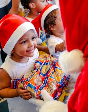 Porque nenhuma criança deveria passar o Natal sem um sorriso, um doce ou um brinquedo.